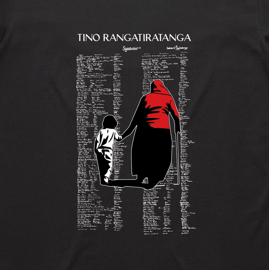 The Tino Rangatiratanga T-Shirt celebrates Dame Whina Cooper’s enduring legacy and the mana of Māori sovereignty. Featuring the iconic image of Whina Cooper and her mokopuna at the start of the historic Land March, this design symbolises the journey, resilience, and commitment to tino rangatiratanga (self-determination).