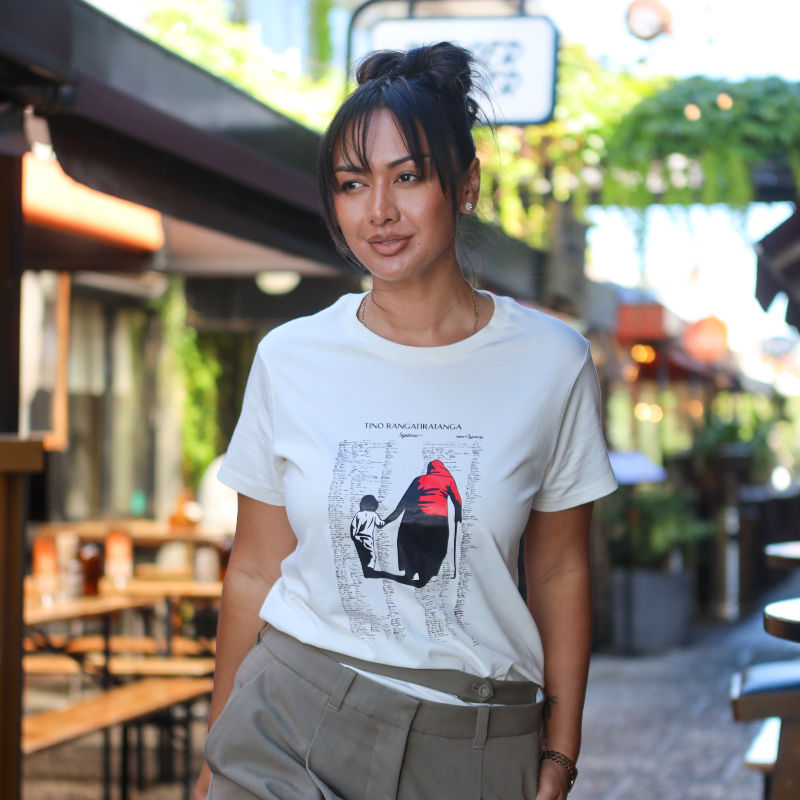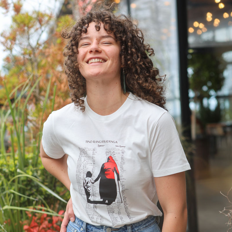 The Tino Rangatiratanga T-Shirt celebrates Dame Whina Cooper’s enduring legacy and the mana of Māori sovereignty. Featuring the iconic image of Whina Cooper and her mokopuna at the start of the historic Land March, this design symbolises the journey, resilience, and commitment to tino rangatiratanga (self-determination).
